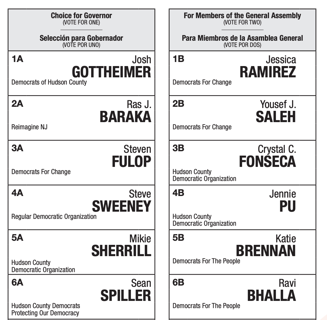 Incumbent Assemblywoman Jessica Ramirez (D-Jersey City) has aligned herself with Jersey City Mayor Steven Fulop and is running alongside Jersey City Councilman Yousef Saleh under the “Democrats for Change” slogan. Meanwhile, the Hudson County Democratic Organization (HDCO), which endorsed Mikie Sherrill in the gubernatorial race, is backing its own slate: Director of Public Works Crystal Fonseca and Hoboken Public Library Director Jennie Pu.